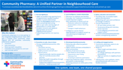 Community pharmacy is an important part of local health systems and will play a role within neighbourhood working as these models develop.