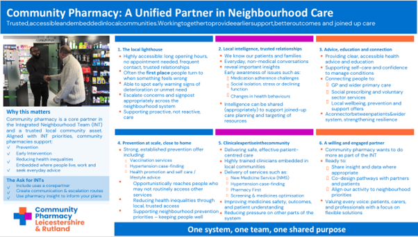 CPL&R will continue to work with system partners to ensure community pharmacy is represented in neighbourhood discussions and planning across Leicester, Leicestershire and Rutland.